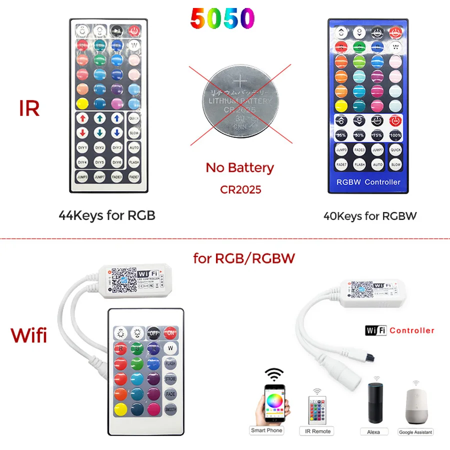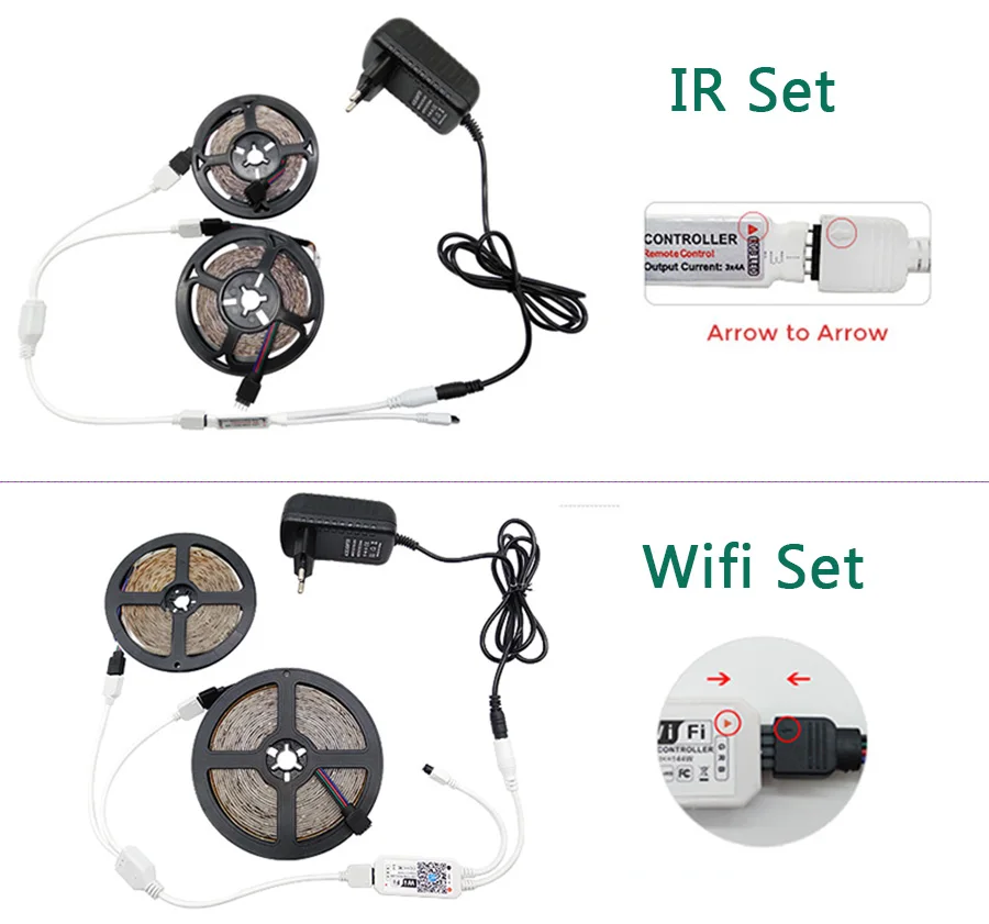 5m 10m 15m RGBW RGBWW RGB LED bande lumineuse 5050 60LED s Luces lumière Led bande DC12V ruban Flexible IR WiFi Contoller + adaptateur ue