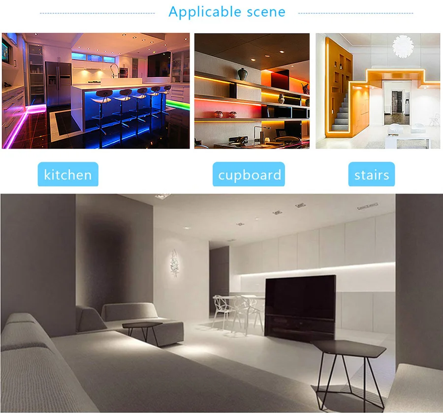 【Voice & Music Sync】:Notre bande lumineuse led peut détecter facilement tout son avec microphone haute sensibilité intégré. Il changera de couleur en fonction des battements de la voix et du rythme de la musique. L’application peut synchroniser les chansons depuis votre téléphone. Vous pouvez télécharger et jouer la musique que vous aimez. Vous pouvez faire danser cette lumière avec vous les gars. C’est incroyable pour un spectacle de fête