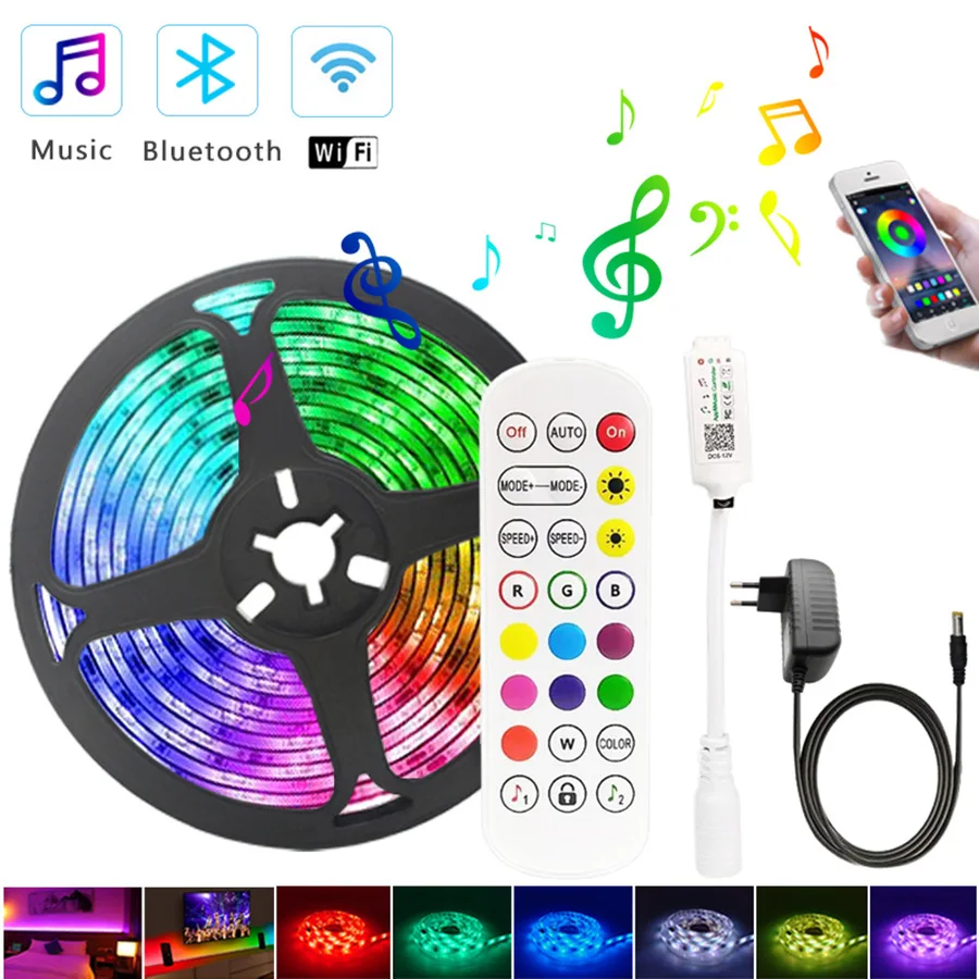 Bande lumineuse Led 5050 RGB DC 12V, Flexible, 30M, 5M, 10M, 15M, avec Bluetooth, commande musicale, pour la maison, noël